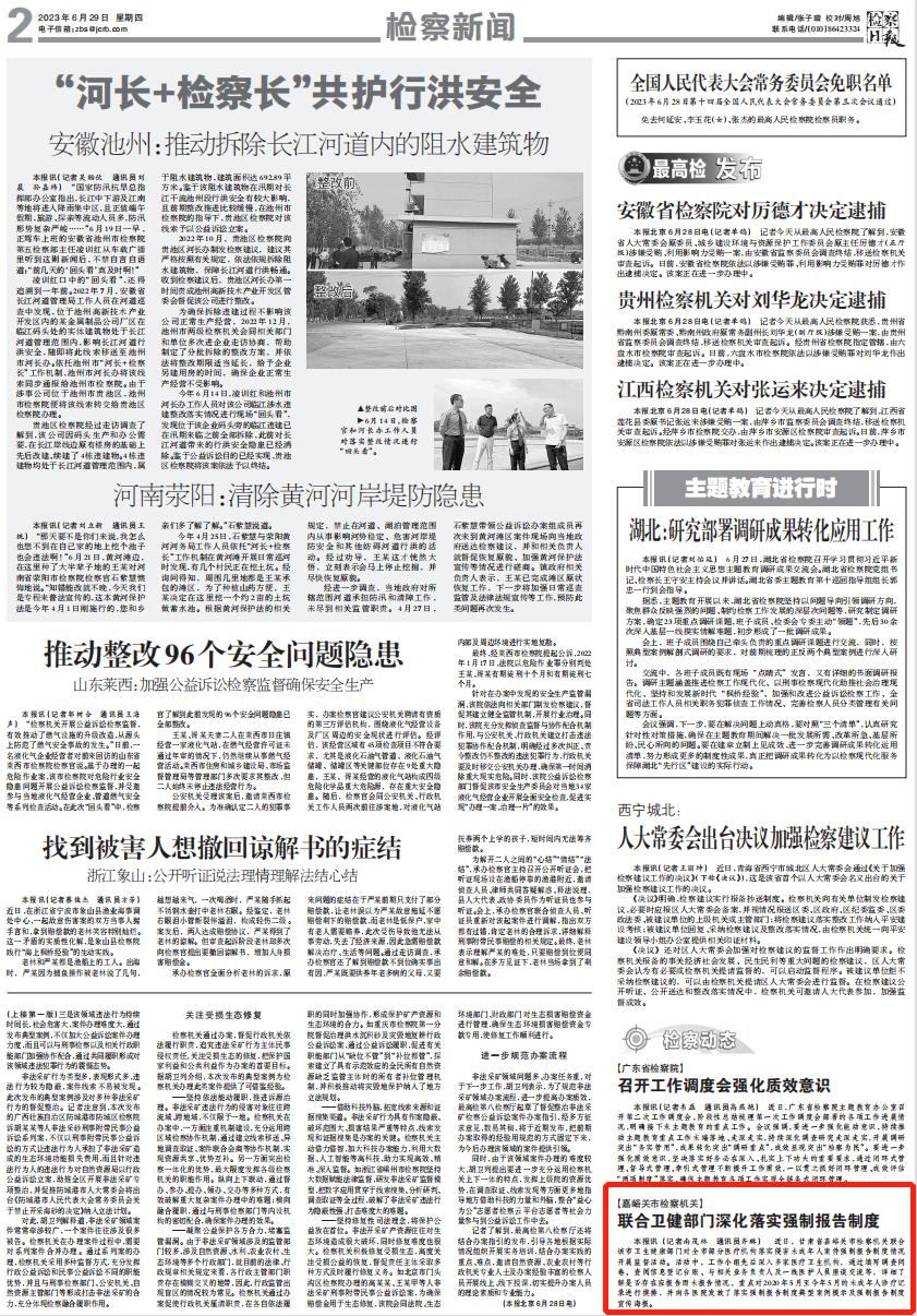 二版刊发《嘉峪关市检察机关联合卫健部门深化落实强制报告制度》。