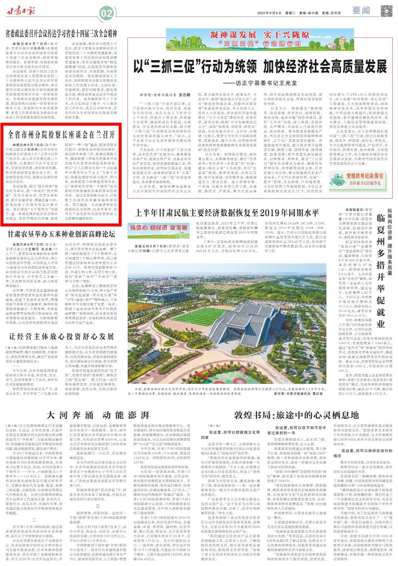 2023年8月8日,甘肃日报刊发《全省市州分院检察长座谈会在兰召开》。