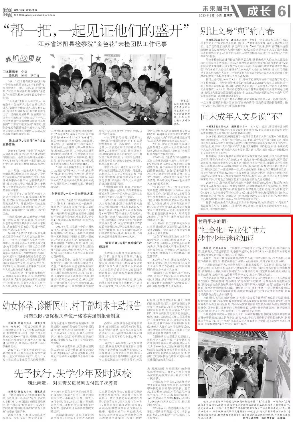 未来周刊刊发《甘肃平凉崆峒:“社会化+专业化”助力涉罪少年迷途知返》。