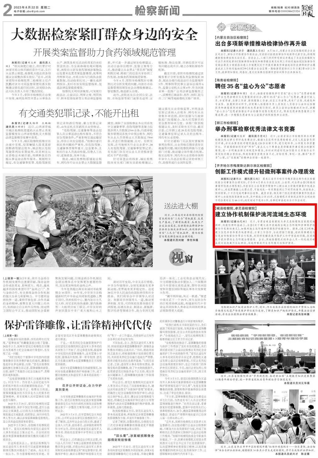 刊发《岷县检察院、卓尼县检察院:建立协作机制保护洮河流域生态环境》。