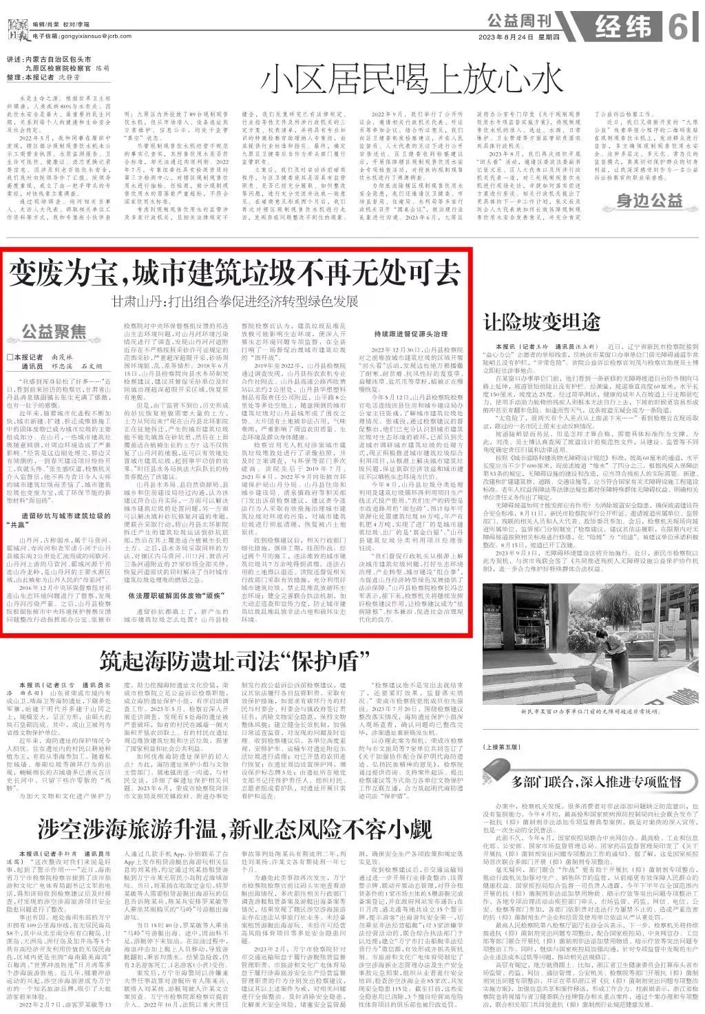 公益周刊刊发《变废为宝,城市建筑垃圾不再无处可去——甘肃山丹:打出组合拳促进经济转型绿色发展》。