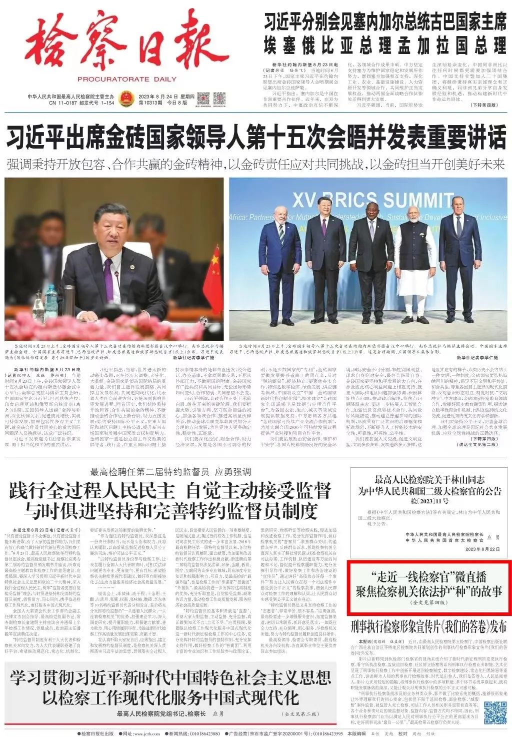 头版刊发《“走近一线检察官”微直播聚焦检察机关依法护“种”的故事》。