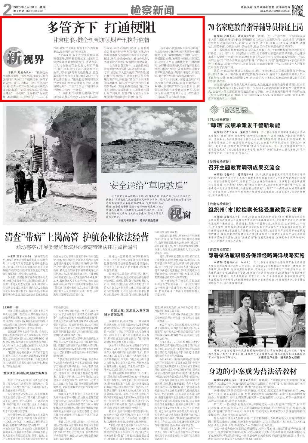 刊发《多管齐下 打通梗阻——甘肃庄浪:健全机制加强财产刑执行监督》。