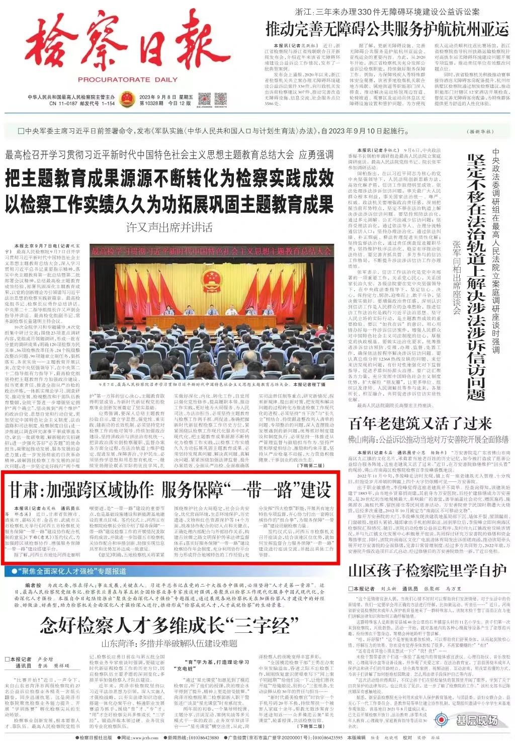 头版刊发《甘肃:加强跨区域协作 服务保障“一带一路”建设》。