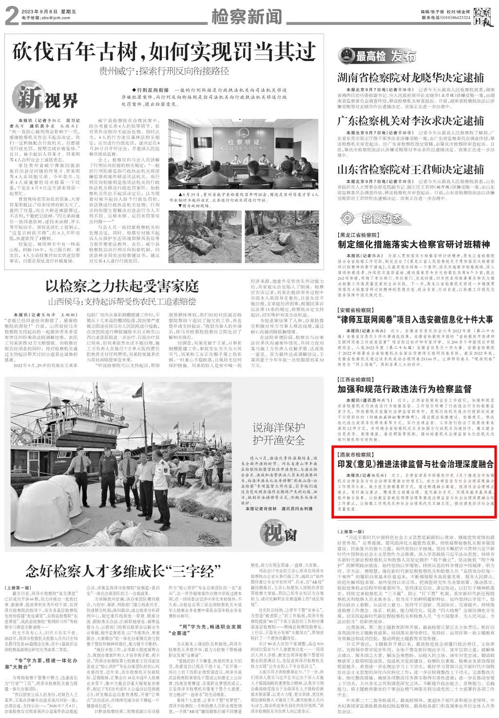刊发《酒泉市检察院:印发〈意见〉推进法律监督与社会治理深度融合》。