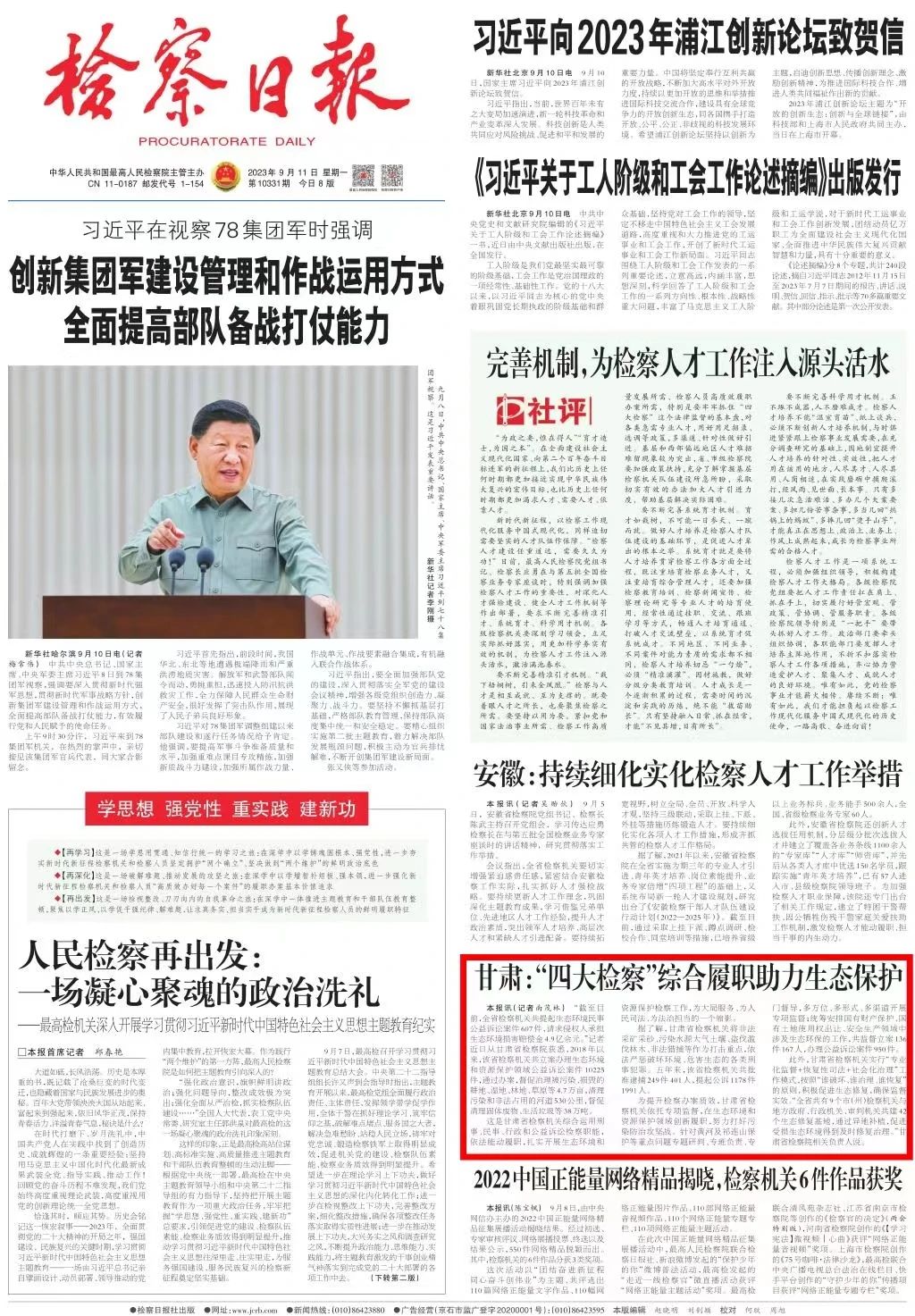 头版刊发《甘肃:“四大检察”综合履职助力生态保护》。