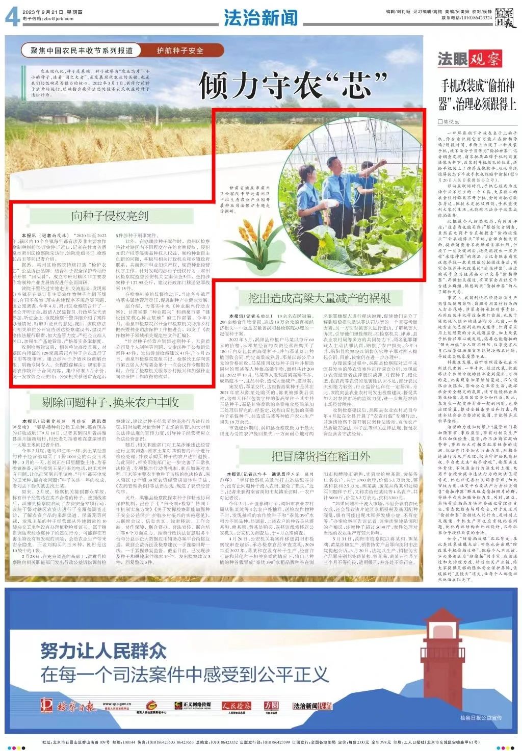“针对种子经营户销售过期种子、无资质公司及个人制种等问题,立案涉种子公益诉讼案件43件,发出诉前检察建议41件。”5月25日,酒泉市检察院党组书记、检察长王烨向该市第五届人大常委会第十一次会议作专题报告时,介绍了检察机关服务乡村振兴和加强种业司法保护工作取得的成果。