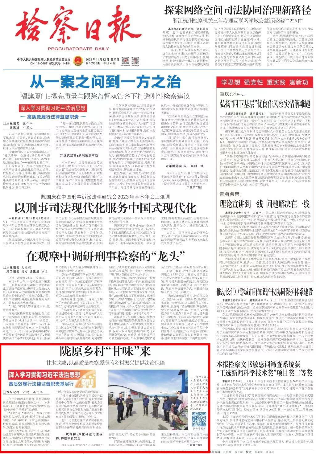 头版刊发《陇原乡村“甘味”来——甘肃武威:以高质量检察履职为乡村振兴提供法治保障》。