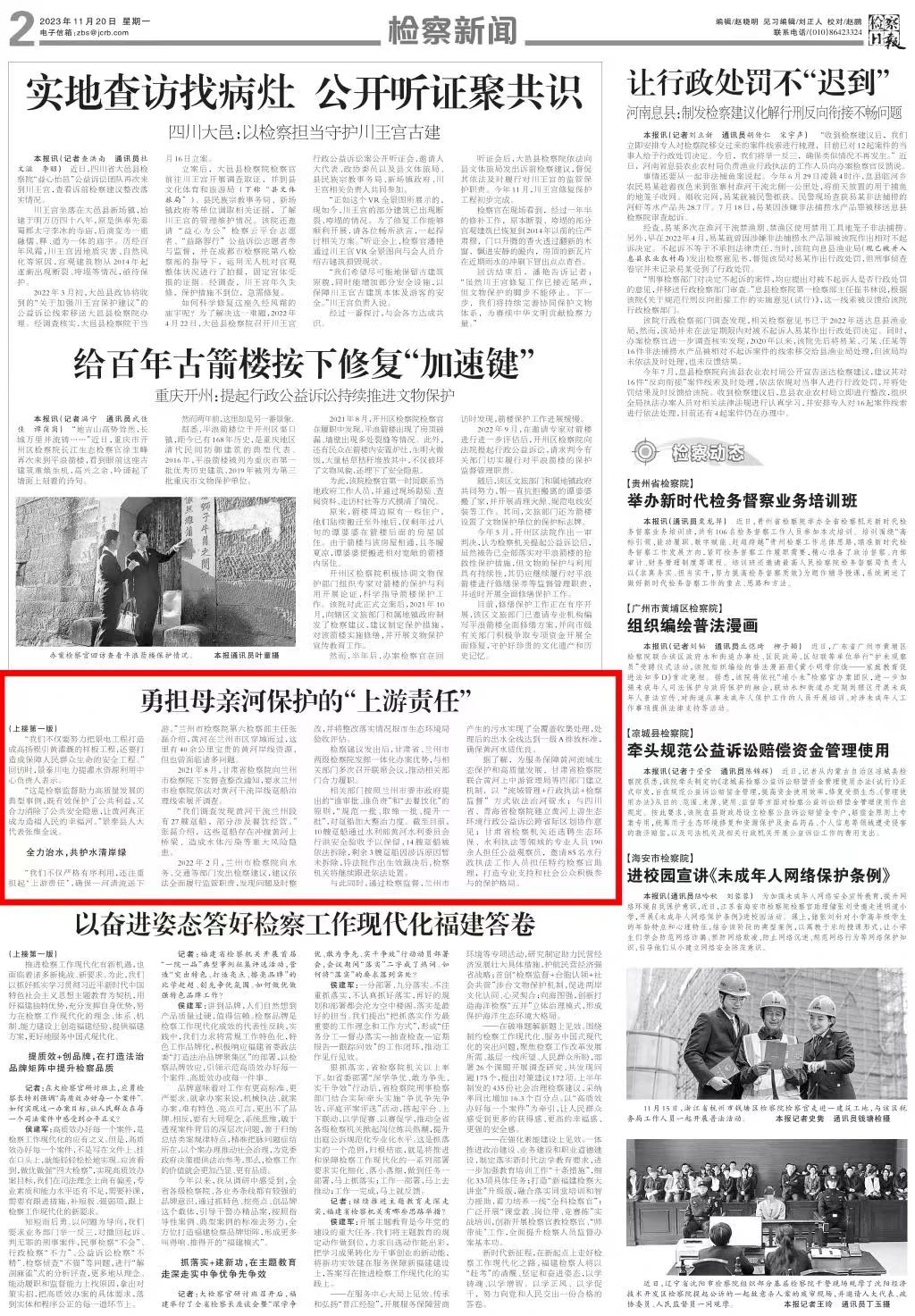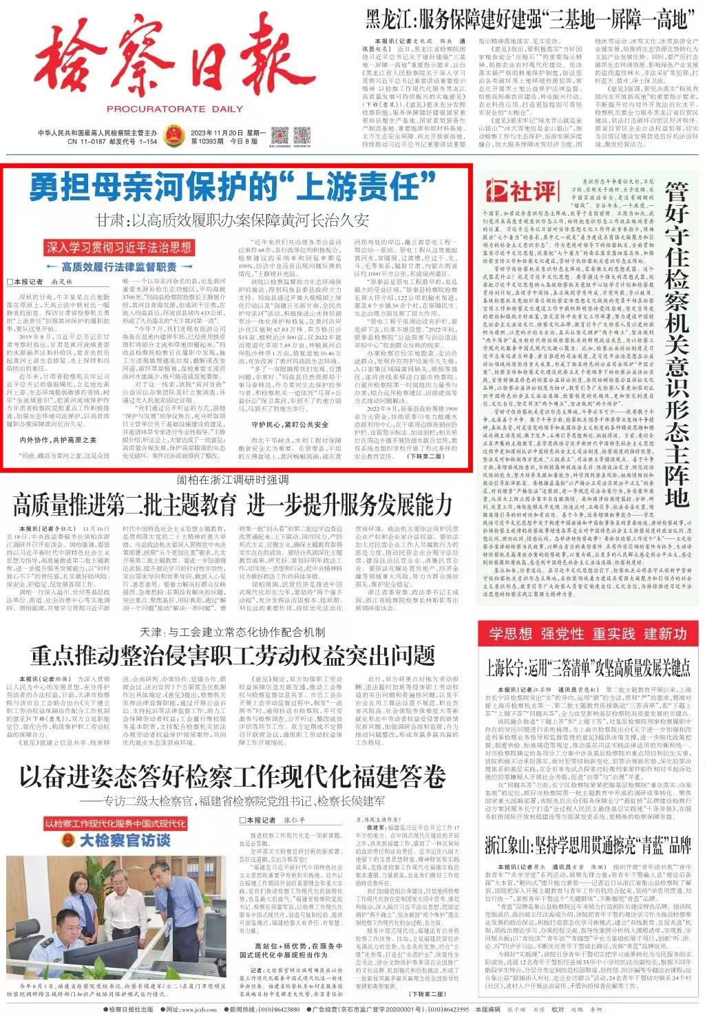 头版头条刊发《勇担母亲河保护的“上游责任”——甘肃:以高质效履职办案保障黄河长治久安》。