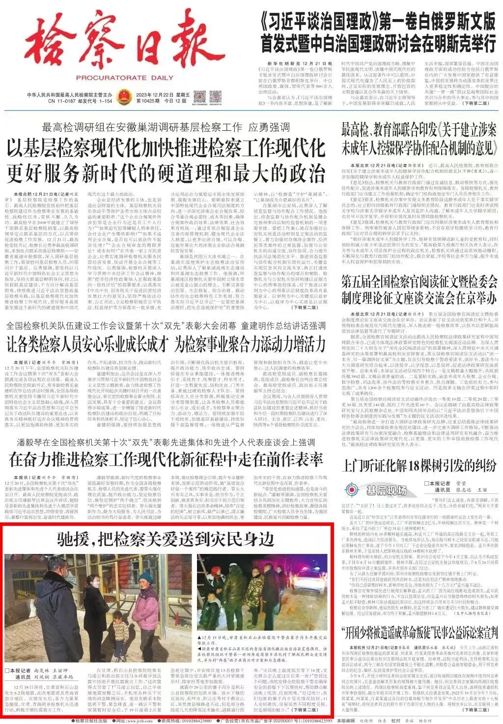 头版刊发《驰援,把检察关爱送到灾民身边》。
