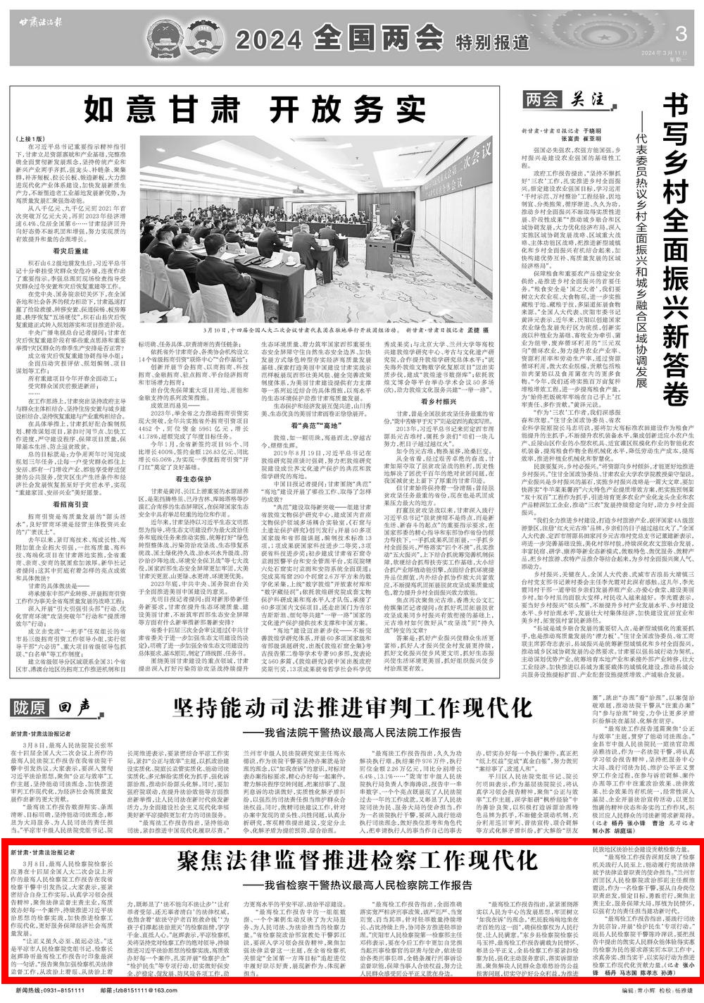 2024年3月11日,甘肃法治报2024全国两会特别报道刊发《聚焦法律监督推进检察工作现代化——我省检察干警热议takse69