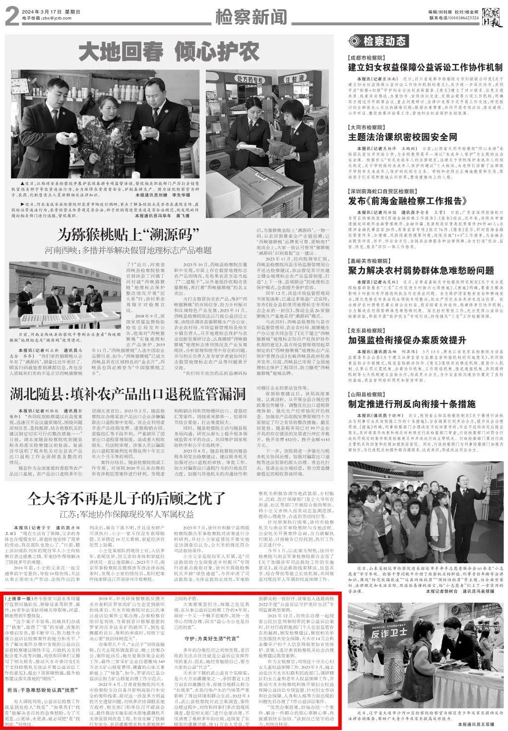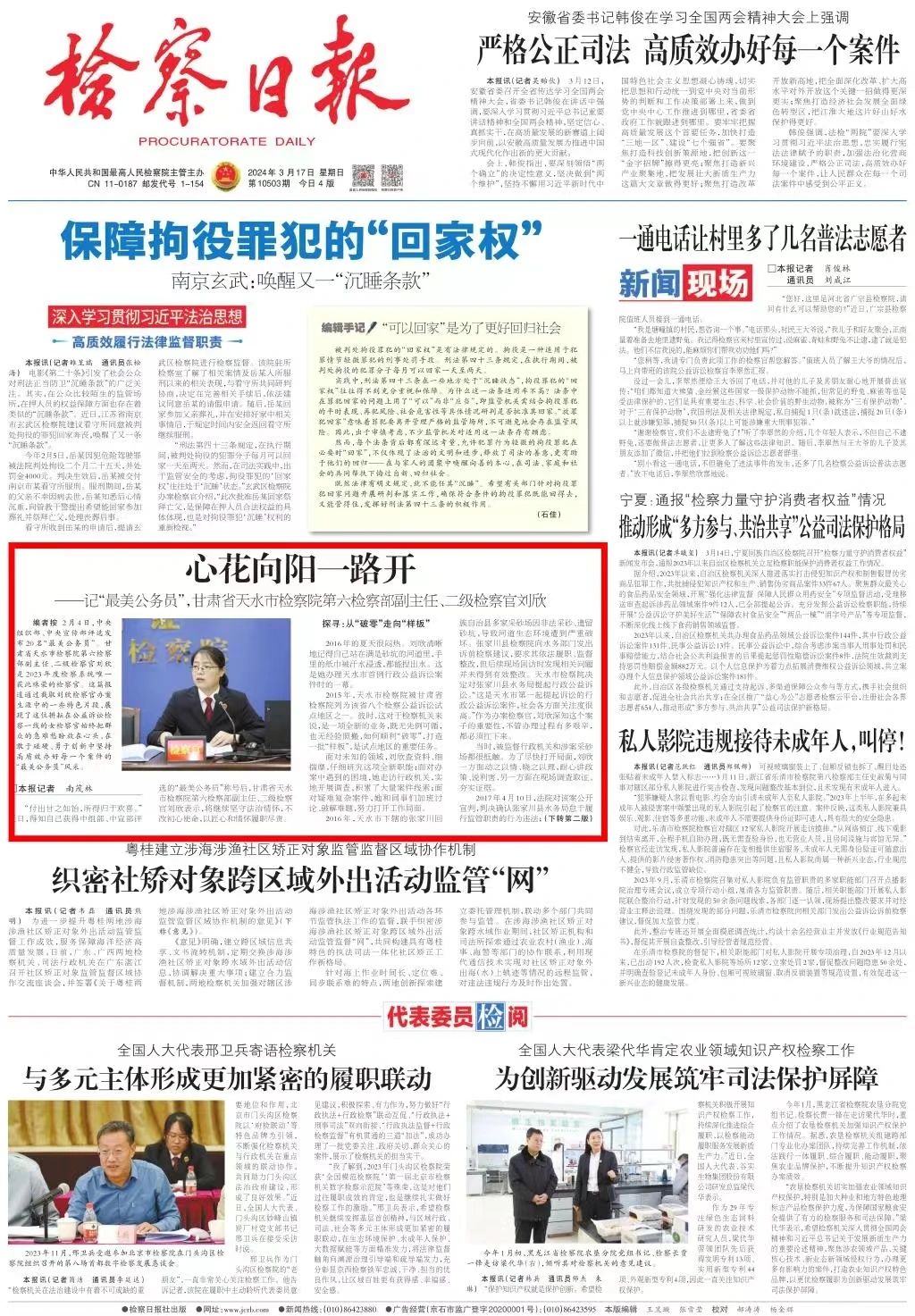 头版刊发《心花向阳一路开——记“最美公务员”,甘肃省天水市检察院第六检察部副主任、二级检察官刘欣》。