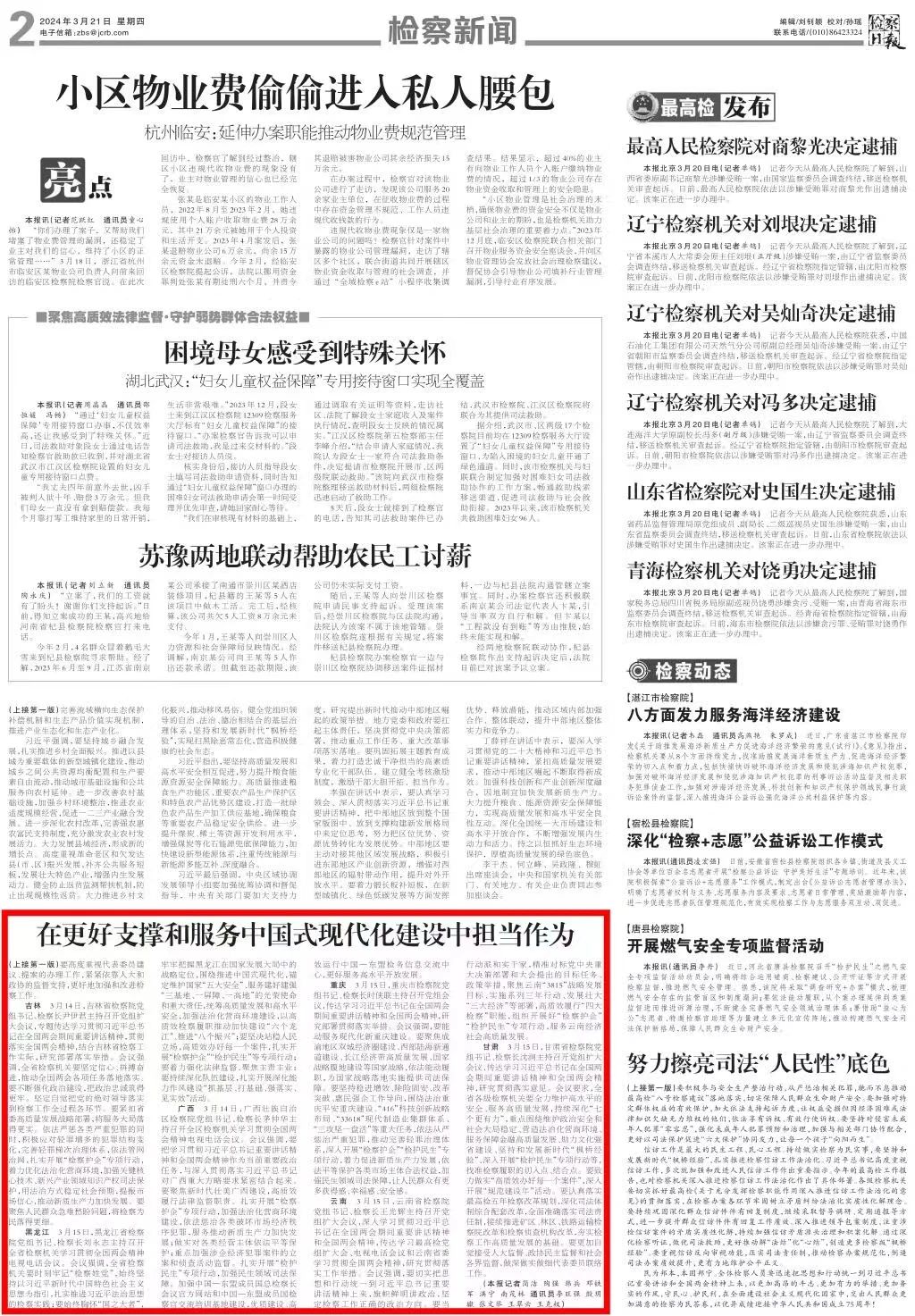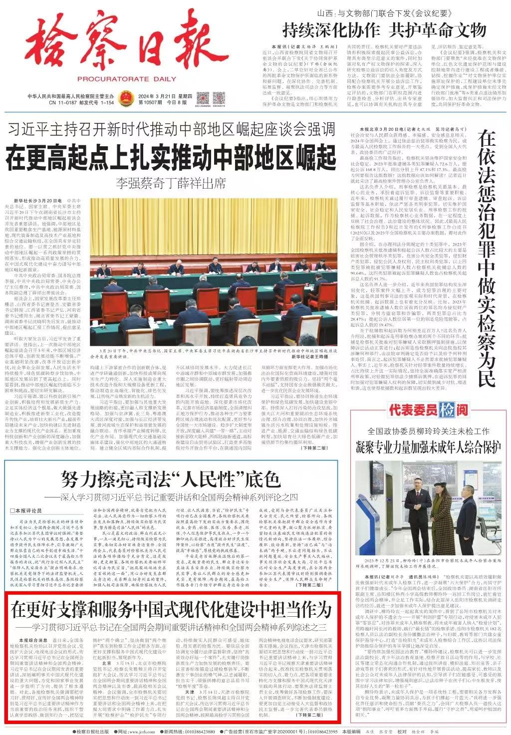 头版刊发《在更好支撑和服务中国式现代化建设中担当作为——学习贯彻习近平总书记在全国两会期间重要讲话精神和全国两会精神系列综述之三》。
