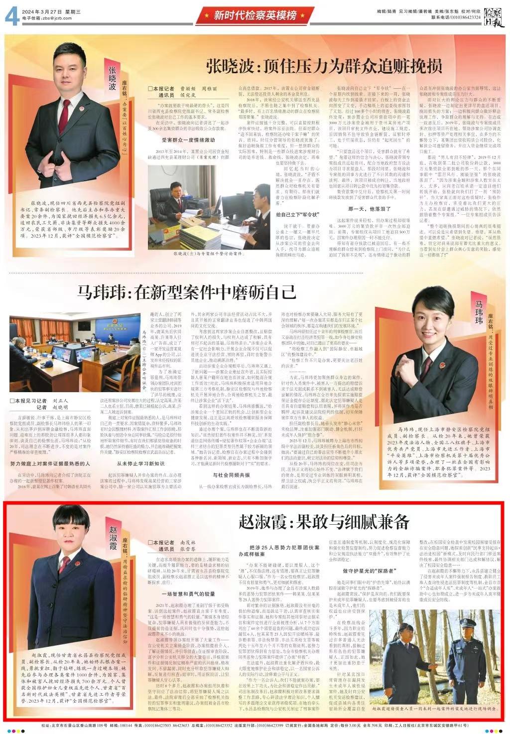 新时代检察英模榜刊发《赵淑霞:果敢与细腻兼备》。