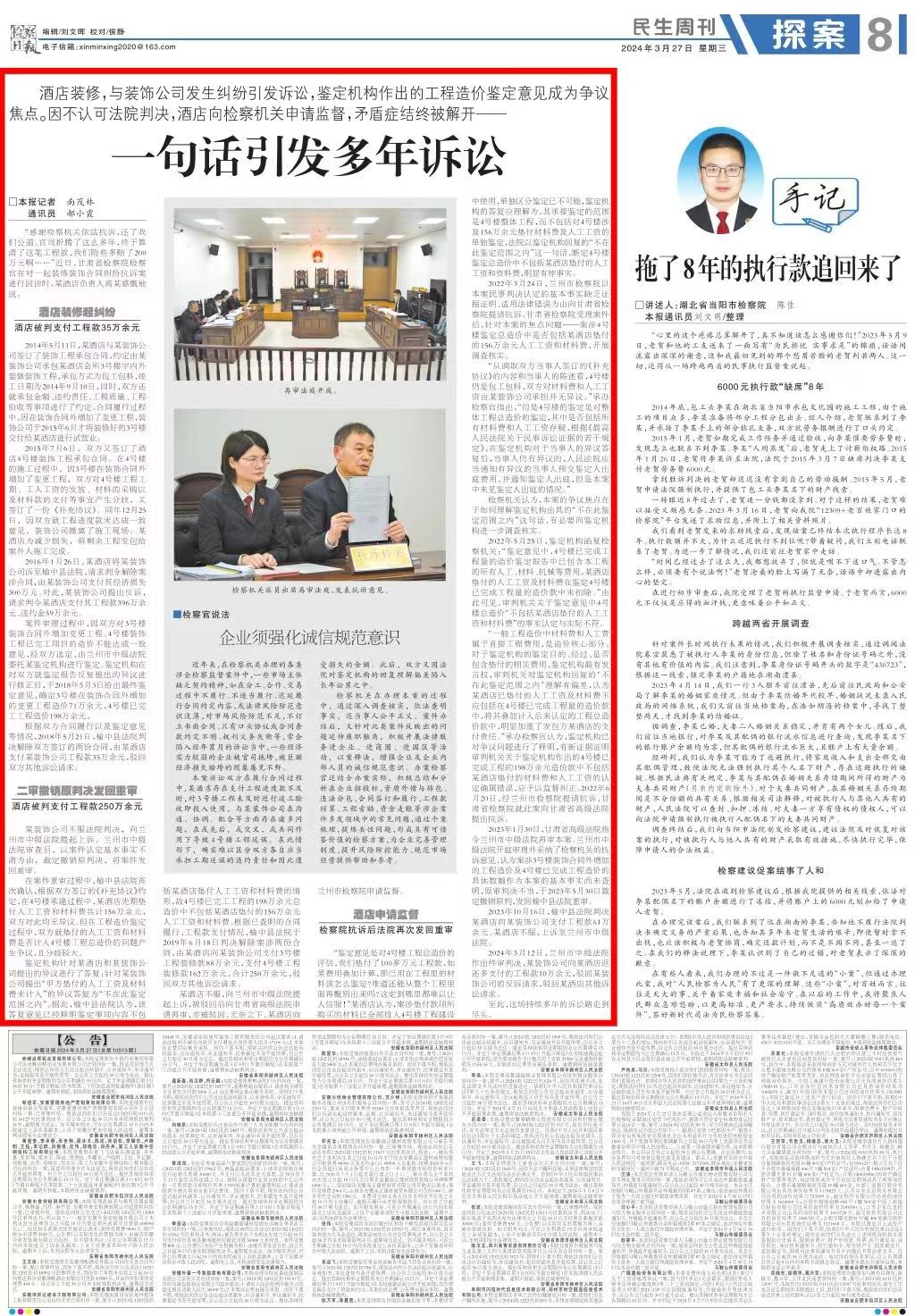 “感谢检察机关依法抗诉,还了我们公道。官司折腾了这么多年,终于算清了这笔工程款,我们险些多赔了200万元啊……”近日,takse69检察官在对一起装修装饰合同纠纷抗诉案进行回访时,某酒店负责人高某感慨地说。