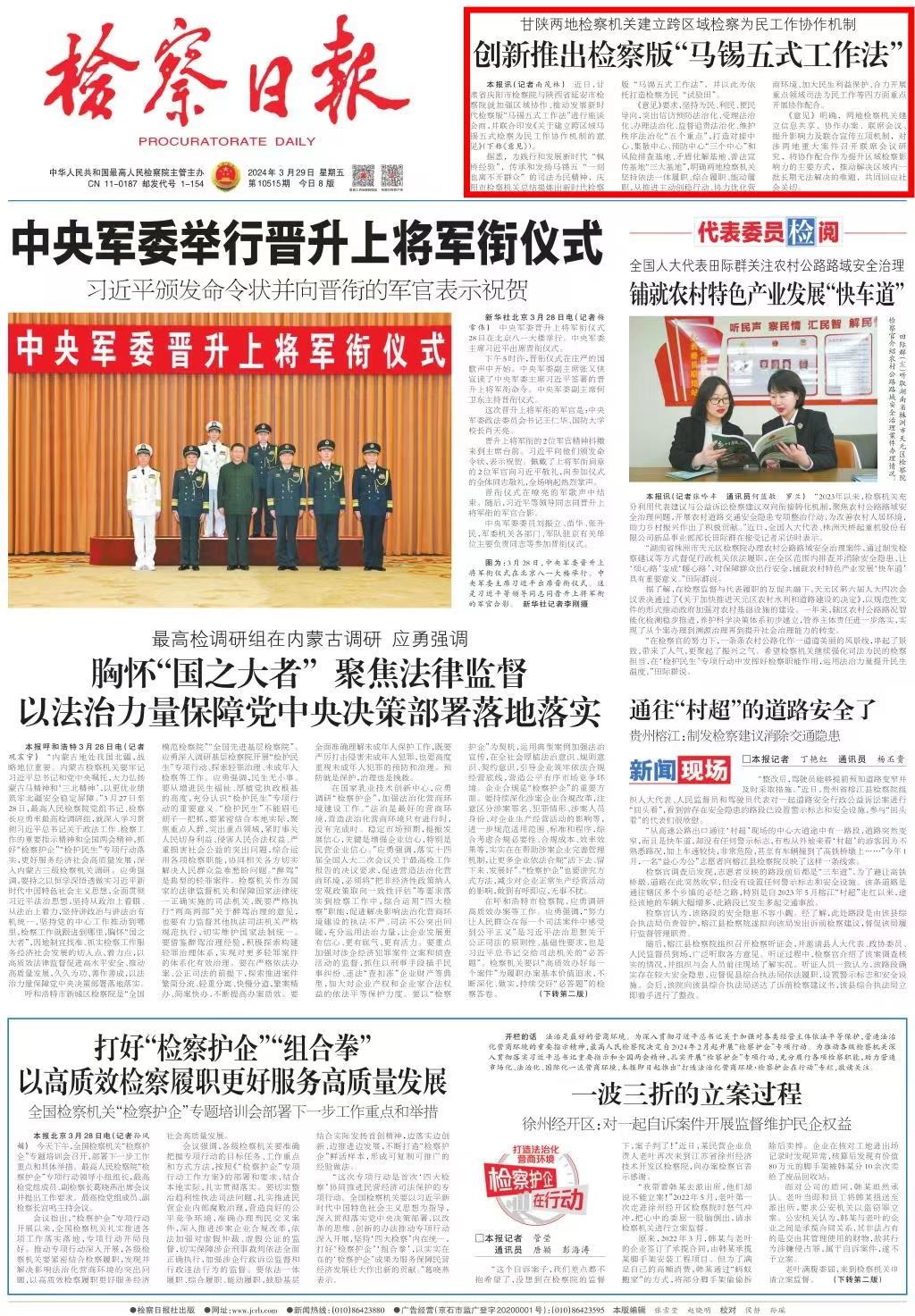 头版刊发《创新推出检察版“马锡五式工作法”——甘陕两地检察机关建立跨区域检察为民工作协作机制》。