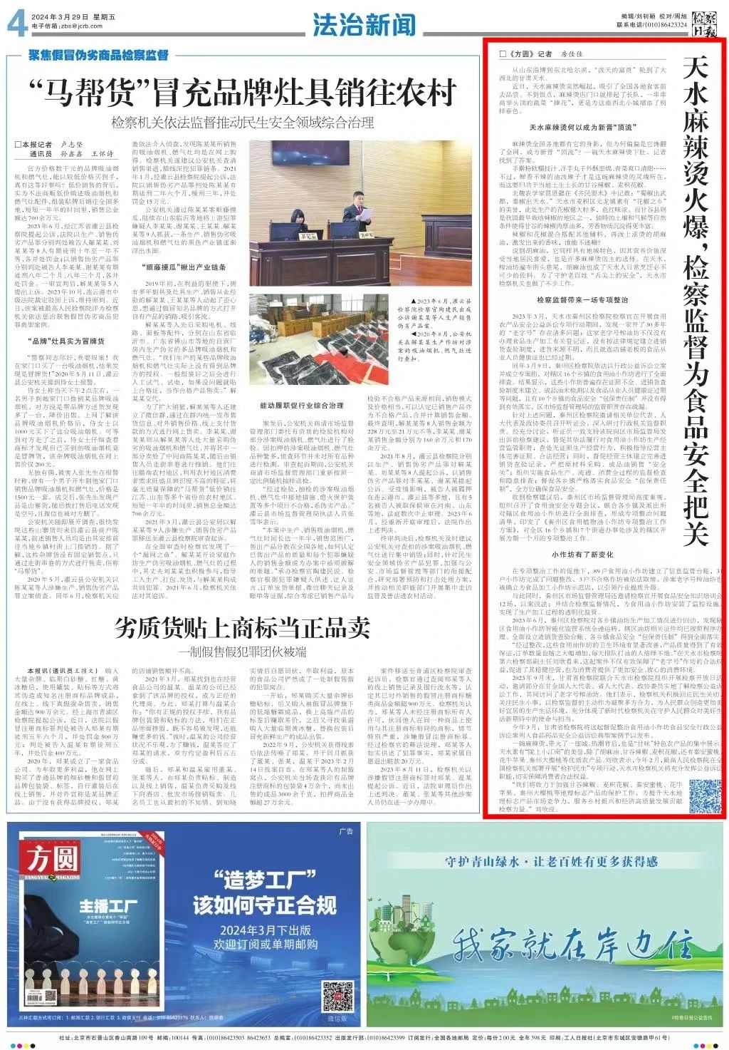 刊发《天水麻辣烫火爆,检察监督为食品安全把关》。
