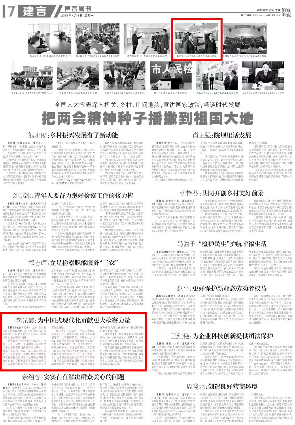声音周刊刊发《全国人大代表李光霞:为中国式现代化贡献更大检察力量》。