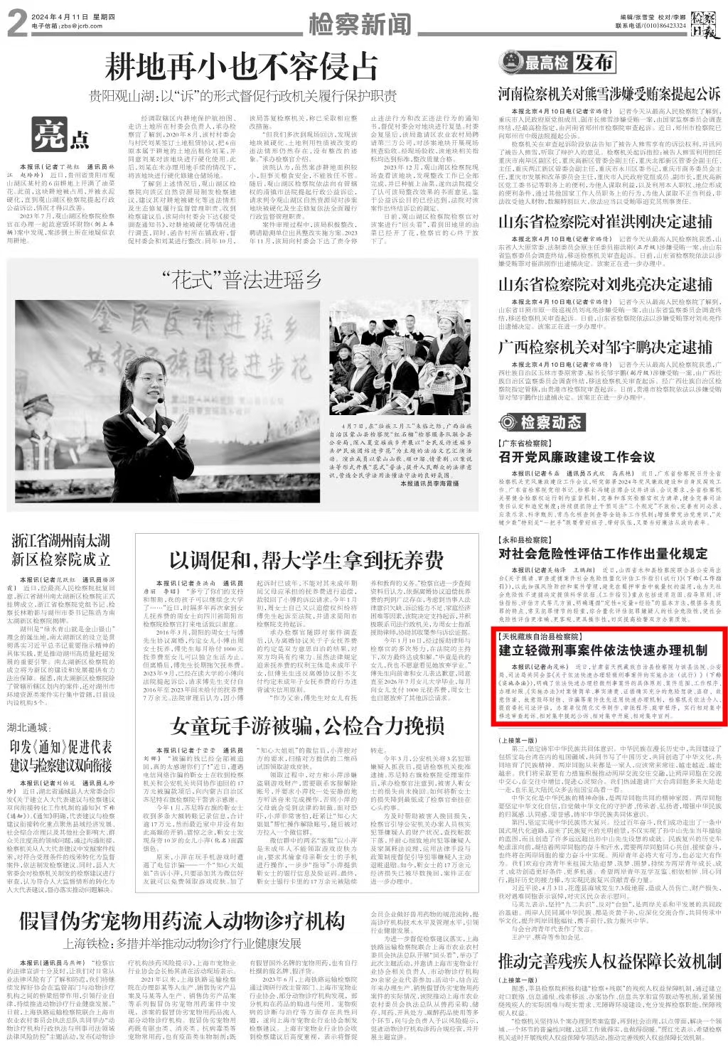 刊发《天祝藏族自治县检察院:建立轻微刑事案件依法快速办理机制》。
