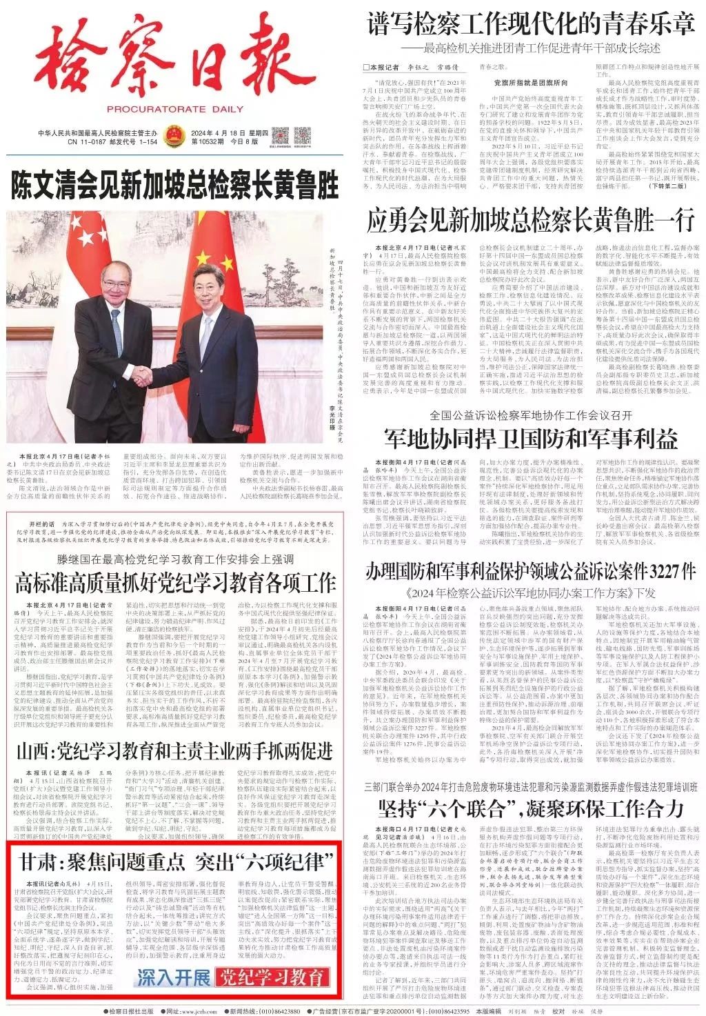 头版刊发《甘肃:聚焦问题重点 突出“六项纪律”》。