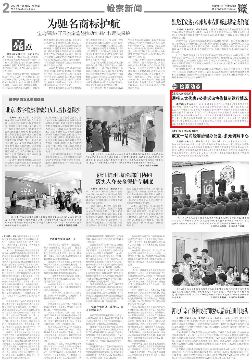本报讯(记者南茂林)近日,甘肃省嘉峪关市人大常委会、市检察院相关负责人向社会通报人大代表+公益诉讼协作机制运行情况。据介绍,该机制自2023年4月建立以来,嘉峪关市检察院在全市20个人大代表工作站设立检察公益诉讼联系点,聘任30名“家”“站”人大代表担任公益观察员,邀请人大代表公益观察员参与办案活动64人次,人大代表公益观察员提供案件线索8件,市检察院立案6件,提出诉前检察建议2件,社会治理检察建议1件。今年3月,嘉峪关市人大、市检察院联合印发了《嘉峪关市人大代表+公益诉讼协作机制实施办法》,为该机制走深走实提供制度保障。