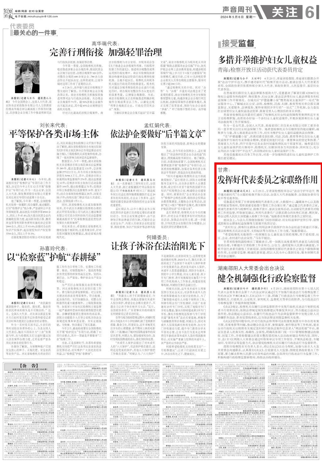 声音周刊刊发《甘肃:发挥好代表委员之家联络作用》。