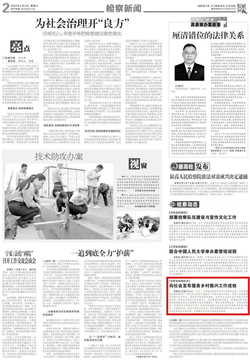 刊发《甘肃省检察机关:向社会发布服务乡村振兴工作成效》。