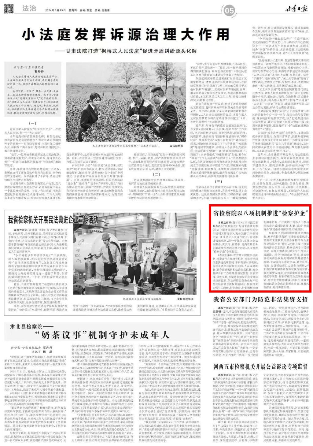 2024年5月23日,甘肃日报刊发《省检察院以八项机制推进“检察护企”》。