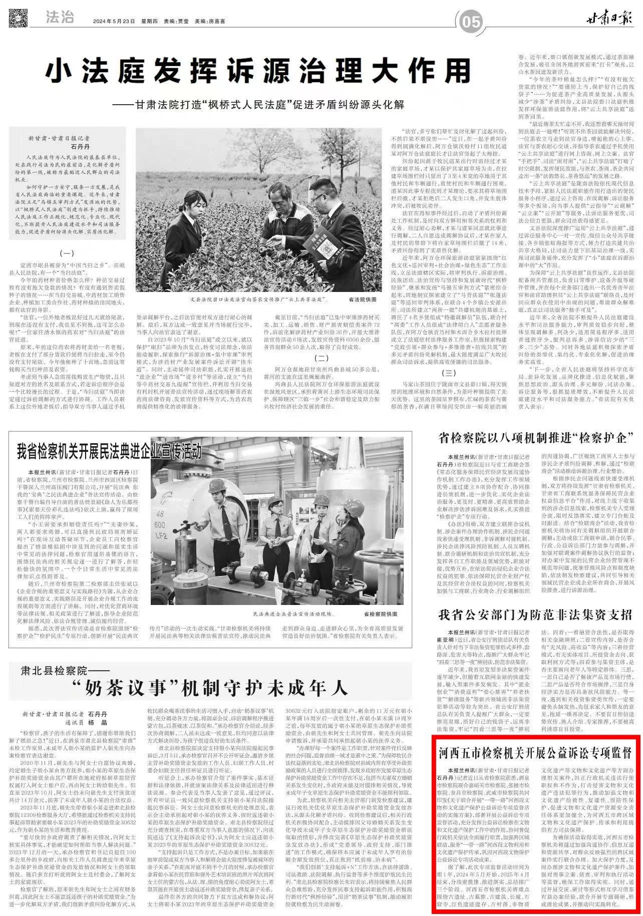 2024年5月23日,甘肃日报刊发《河西五市检察机关开展公益诉讼专项监督》。
