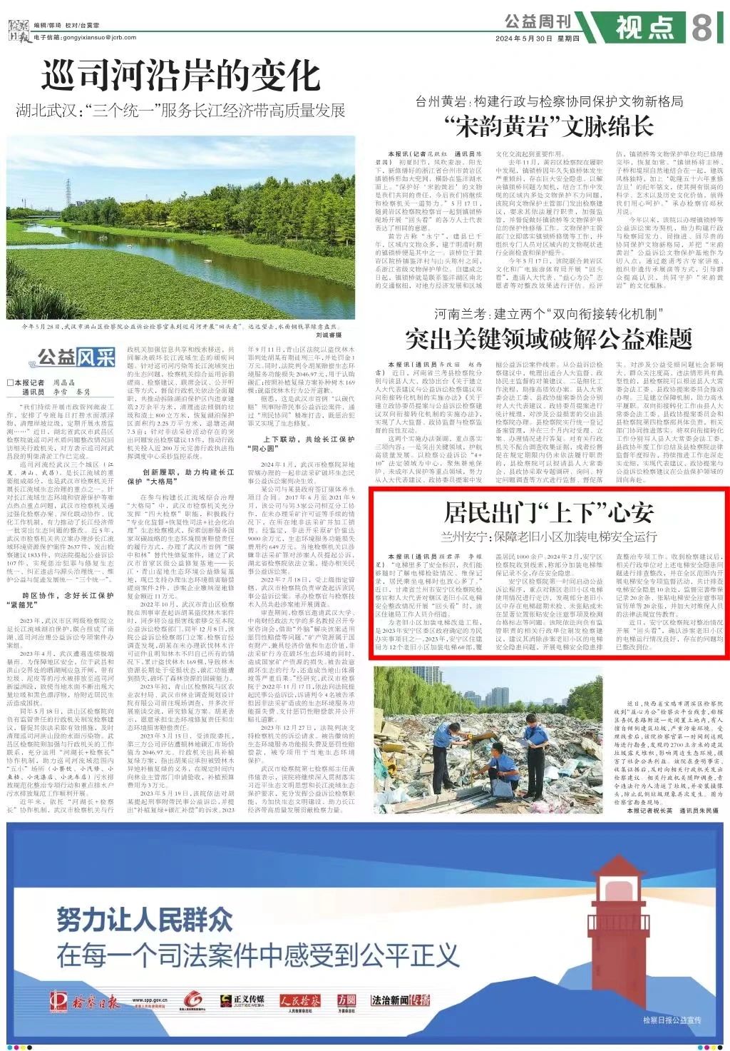 公益周刊刊发《居民出门“上下”心安——兰州安宁:保障老旧小区加装电梯安全运行》。