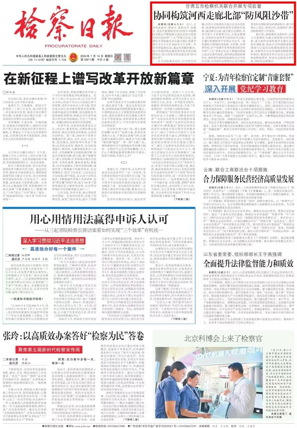 头版刊发《甘肃五市检察机关联合开展专项监督——协同构筑河西走廊北部“防风阻沙带”》。