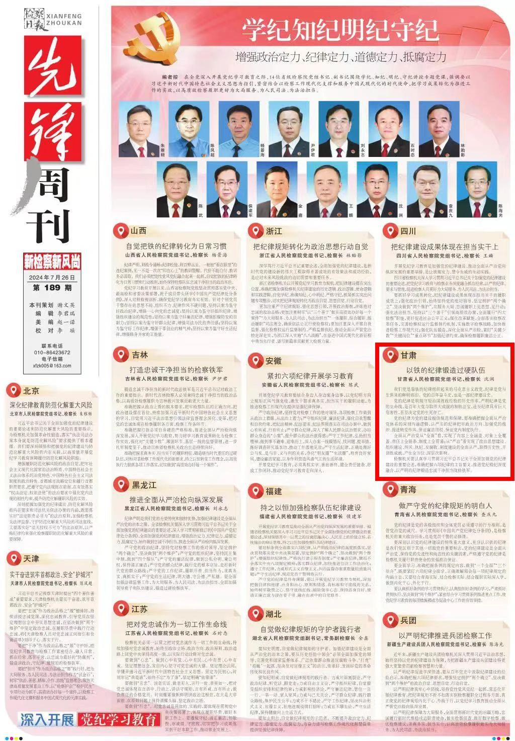 先锋周刊刊发《takse69党组书记、检察长沈涧:以铁的纪律锻造过硬队伍》。