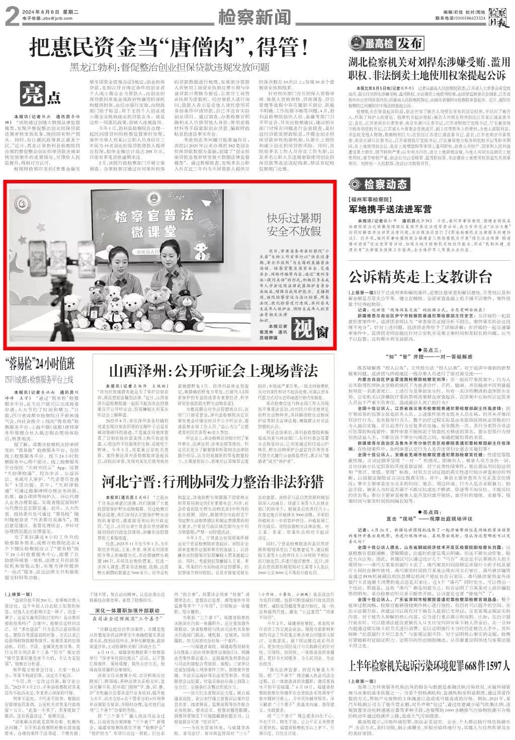 近日,甘肃省秦安县检察院“小禾苗”未检工作室举行以“快乐过暑期,安全不放假”为主题的直播普法活动。检察官聚焦居家安全、交通安全、网络诈骗等内容,通过“案例普法+提问互动”的形式,积极引导未成年人学会运用法律武器维护自身合法权益,增强自我保护能力。直播期间,该院检察官还与沿江检察、珲春法院、敦化检察进行连线,共同普及未成年人保护法、预防未成年人犯罪法等相关法律知识。(本报记者南茂林 通讯员杨柳摄)