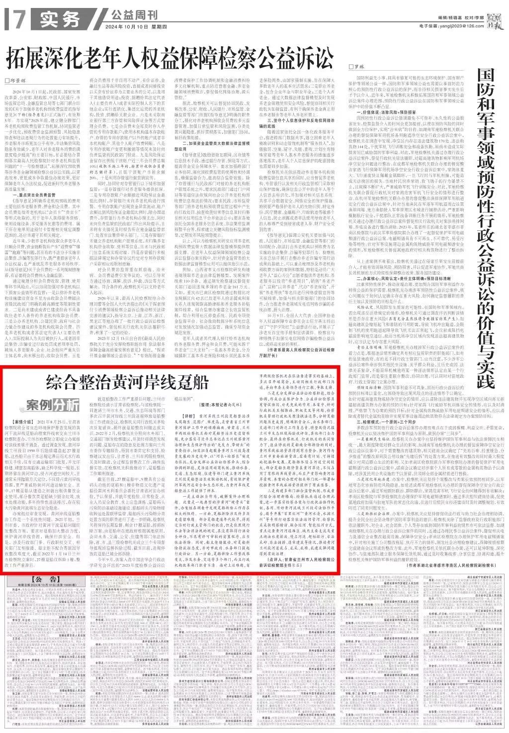 公益周刊刊发《综合整治黄河岸线趸船》。