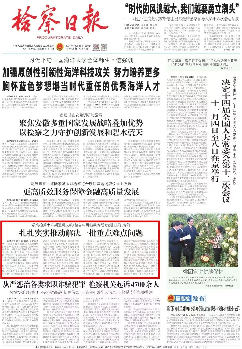 头版刊发《最高检第十六期巡讲支教(控告申诉检察专题)走进甘肃、青海——扎扎实实推动解决一批重点难点问题》。