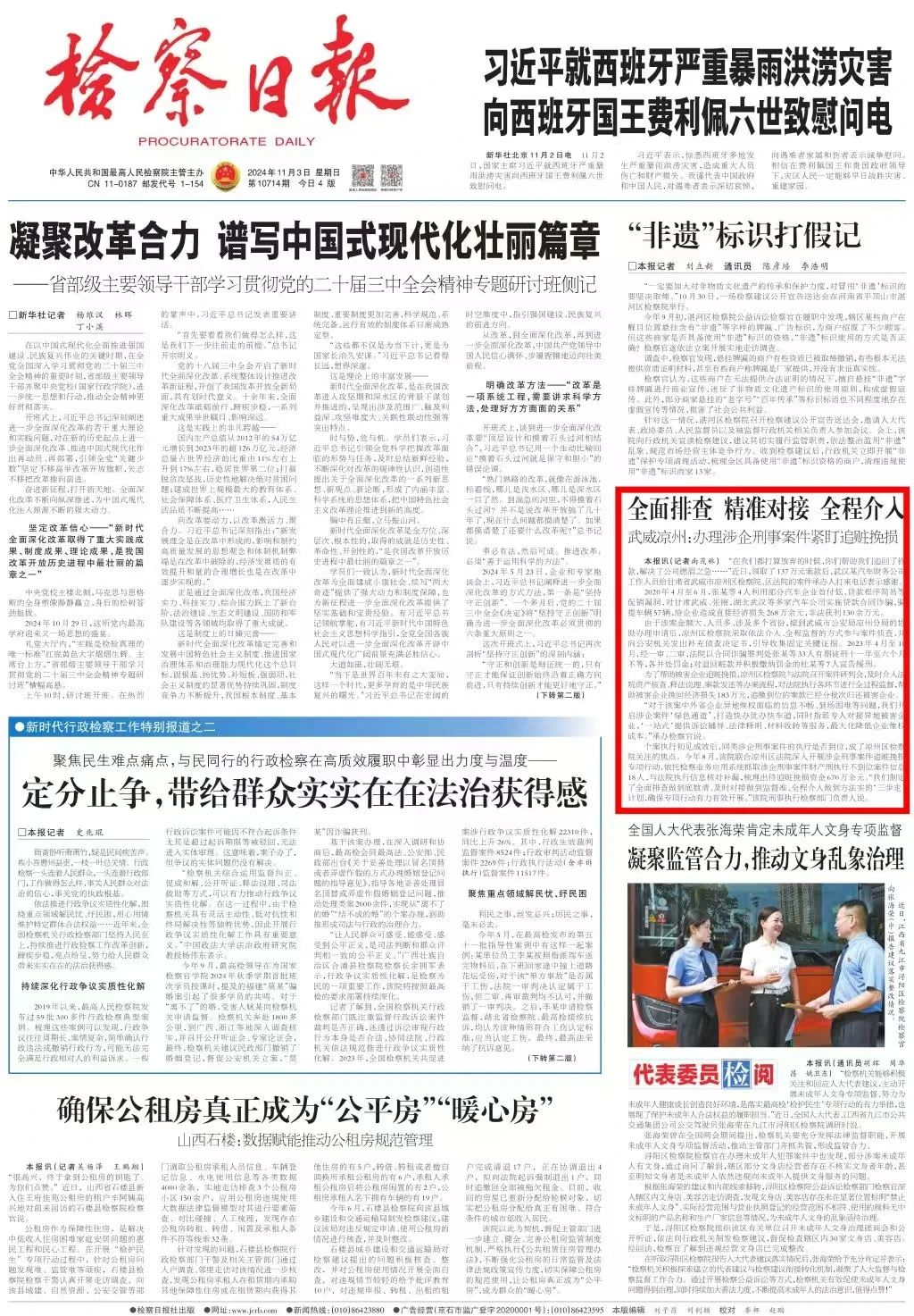 头版刊发《全面排查 精准对接 全程介入——武威凉州:办理涉企刑事案件紧盯追赃挽损》。