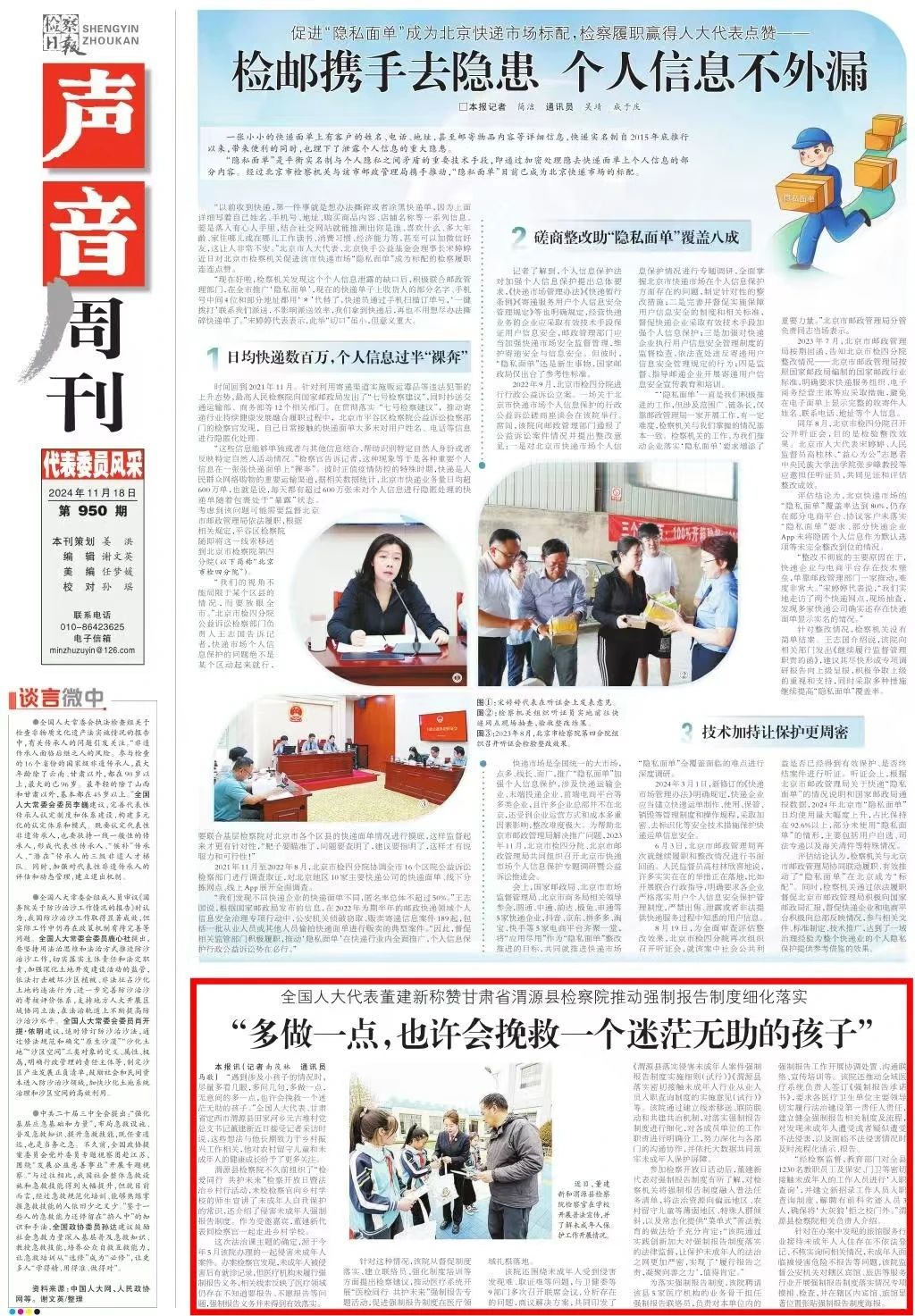 声音周刊刊发《全国人大代表董建新称赞甘肃省渭源县检察院推动强制报告制度细化落实》。