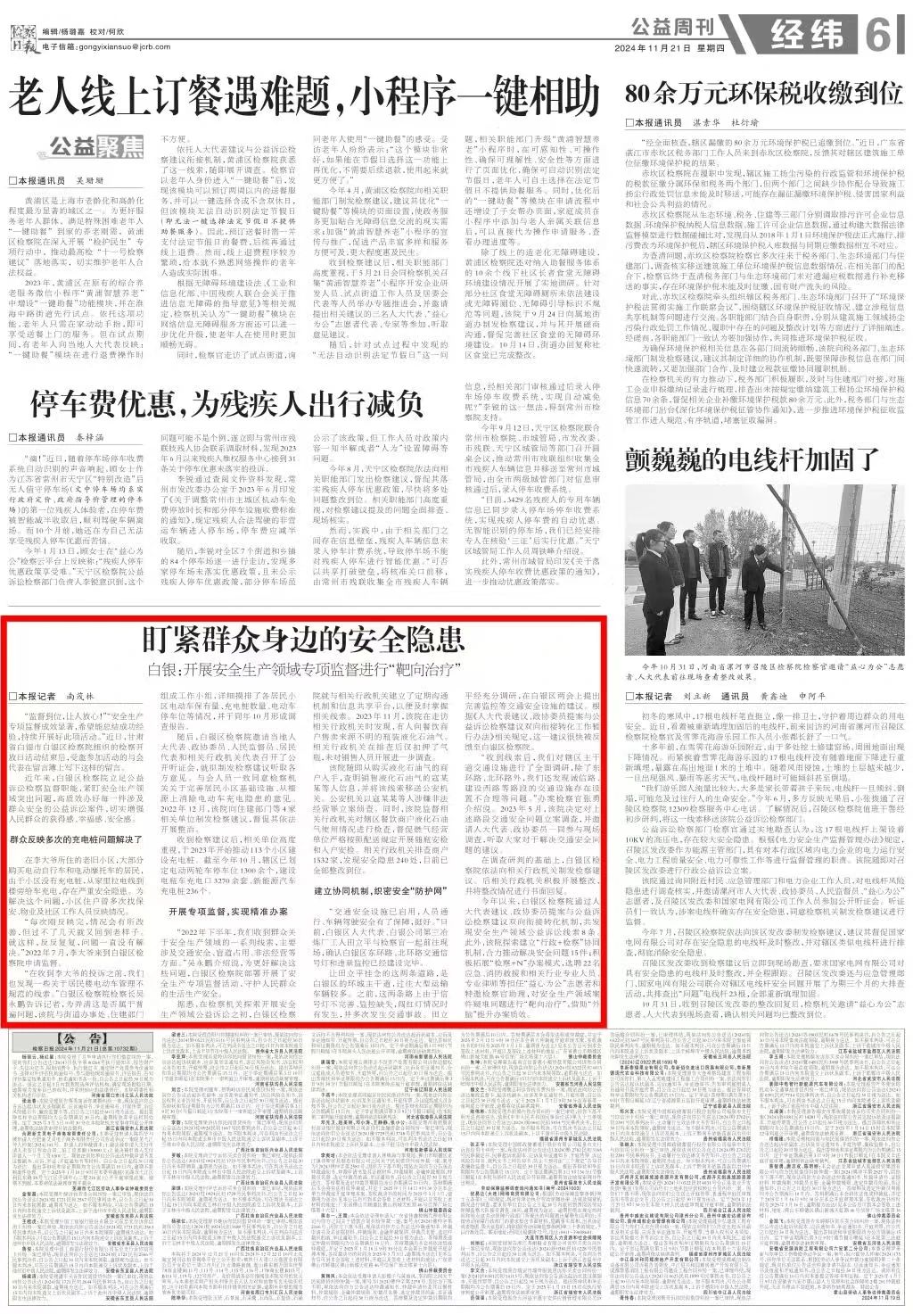 公益周刊刊发《盯紧群众身边的安全隐患——白银:开展安全生产领域专项监督进行“靶向治疗”》。