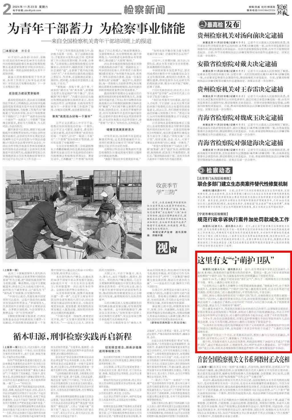 据介绍,为加强未成年人法治宣传教育,和政县检察院于2022年2月成立“宁萌护卫队”,通过开展法治宣讲、心理疏导等,用心呵护未成年人健康成长。自“宁萌护卫队”成立以来,该院共办理强制报告倒查追责案件1件,制发督促监护令25份。(记者南茂林 通讯员李杰)