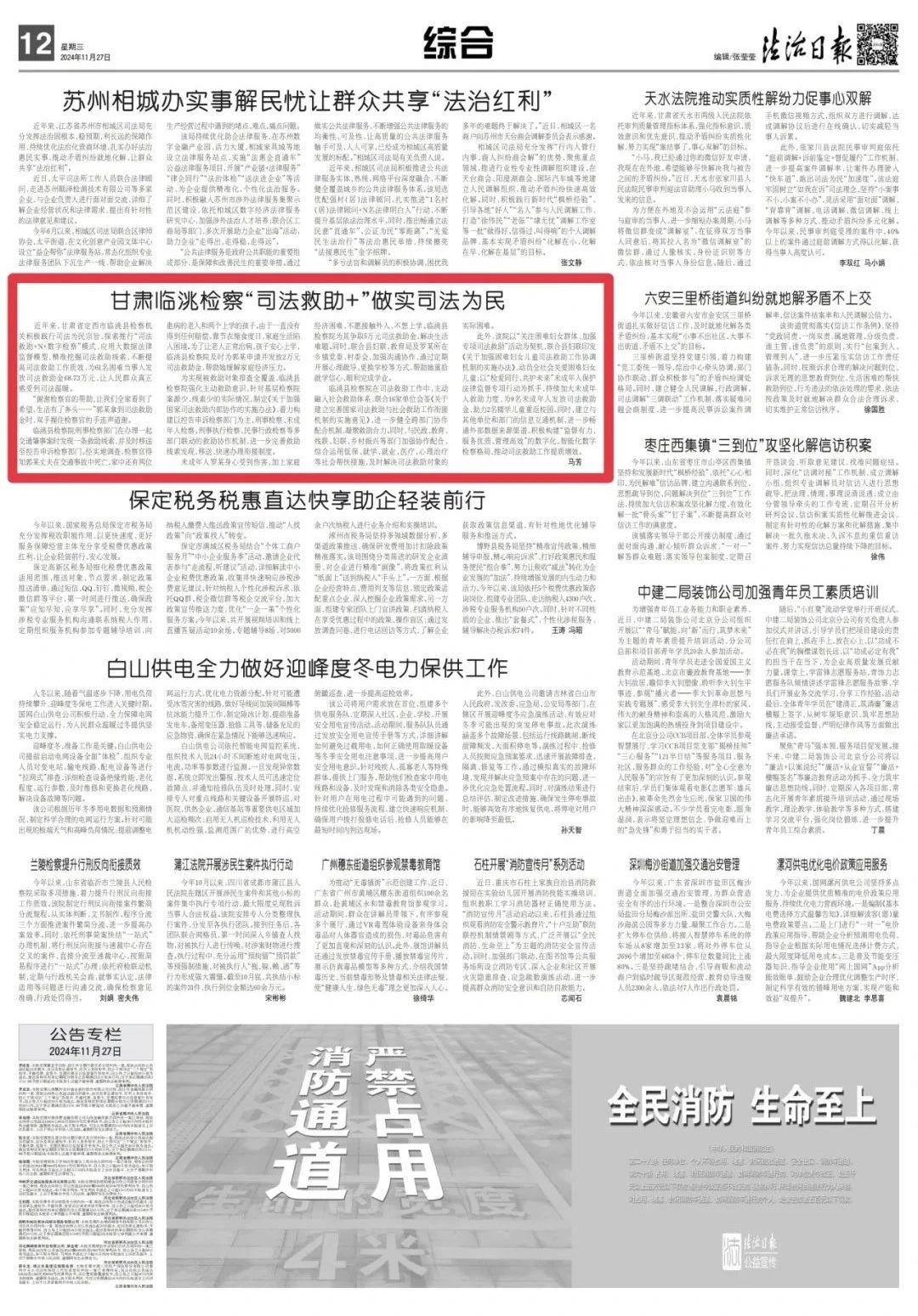 2024年11月27日,法治日报刊发《甘肃临洮检察“司法救助+”做实司法为民》。