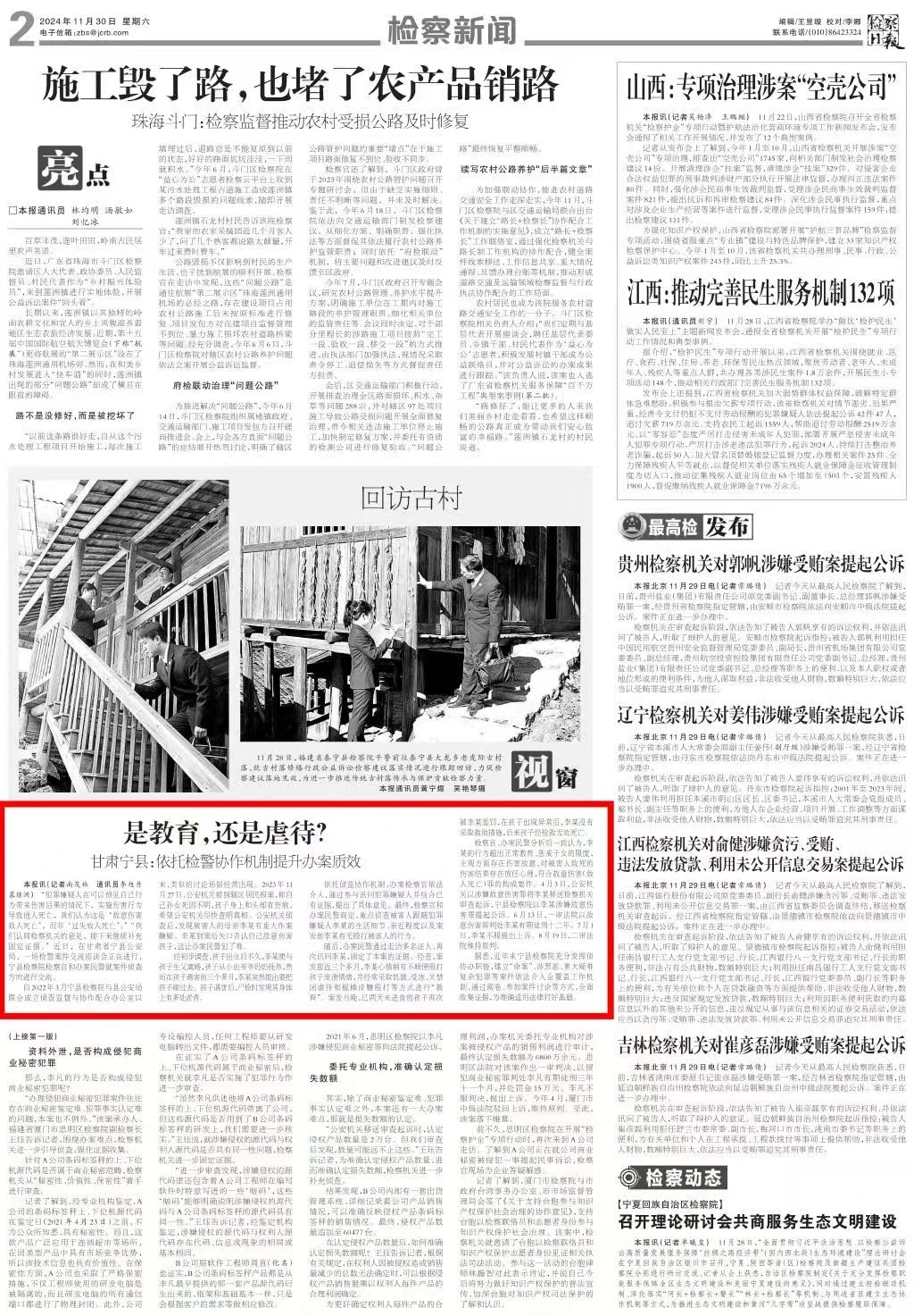 刊发《是教育,还是虐待?——甘肃宁县:依托检警协作机制提升办案质效》。