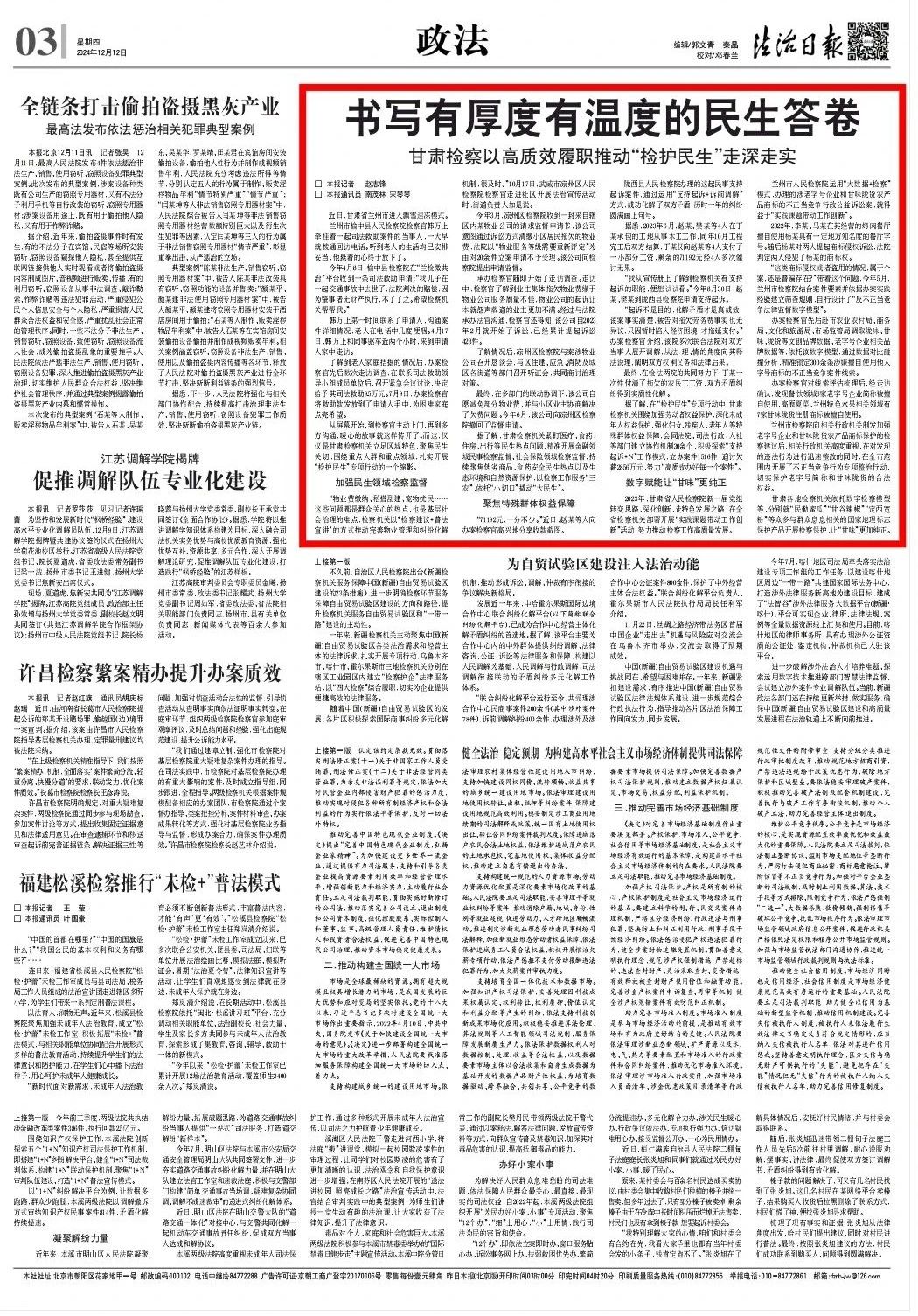 2024年12月12日,法治日报刊发《书写有厚度有温度的民生答卷——甘肃检察以高质效履职推动“检护民生”走深走实》。