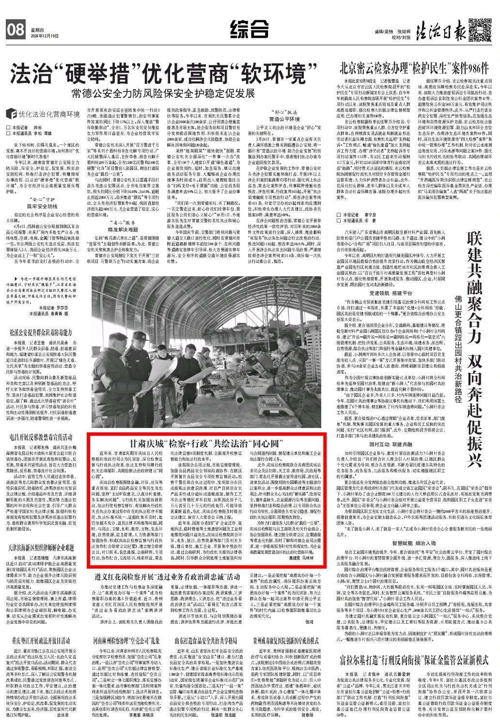 2024年12月19日,法治日报刊发《甘肃庆城“检察+行政”共绘法治“同心圆”》。