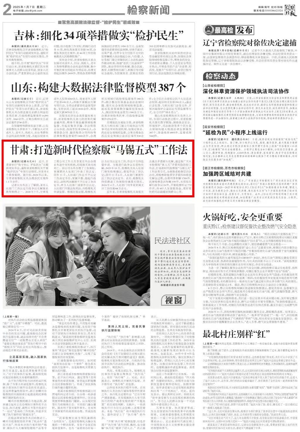 刊发《甘肃:打造新时代检察版“马锡五式”工作法》。