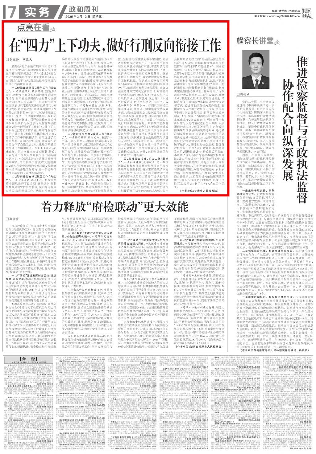 政和周刊刊发《在“四力”上下功夫,做好行刑反向衔接工作》。