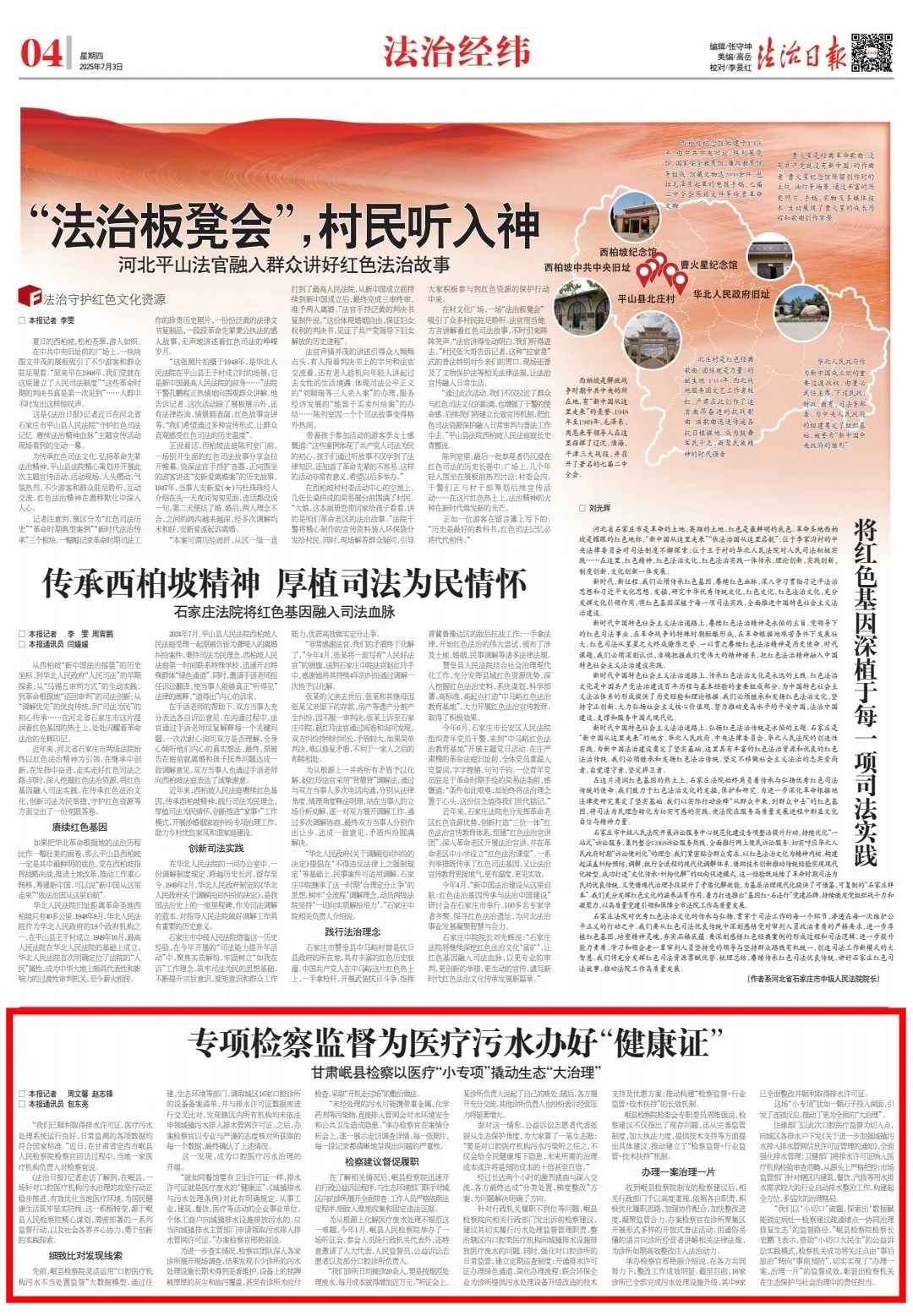 2025年7月3日,法治日报刊发《专项检察监督为医疗污水办好“健康证” ——甘肃岷县检察以医疗“小专项”撬动生态“大治理” 》。