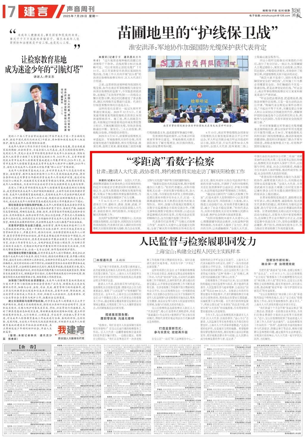 声音周刊刊发《“零距离”看数字检察 甘肃:邀请人大代表、政协委员、特约检察员实地走访了解庆阳检察工作》。