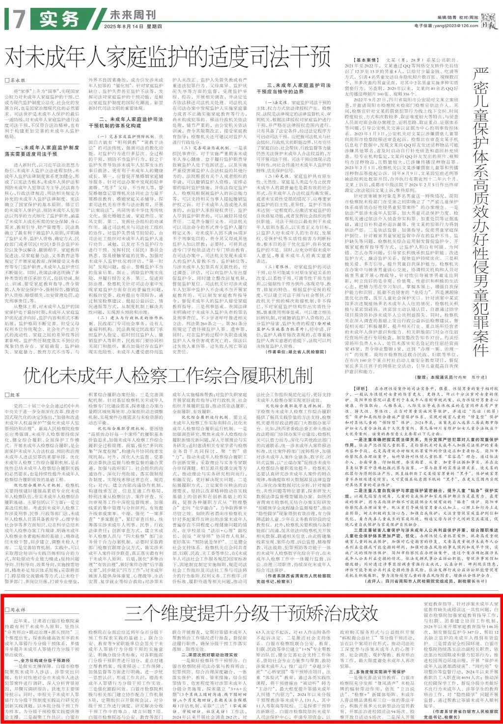 未来周刊刊发《三个维度提升分级干预矫治成效》。