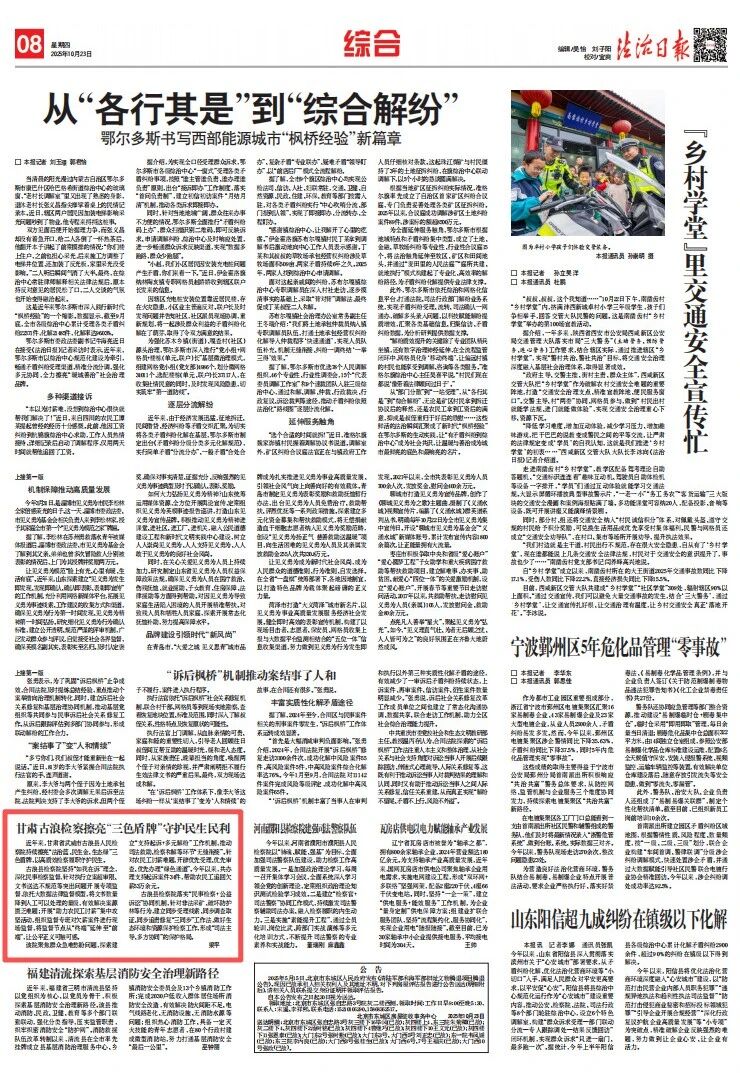 2025年10月23日,法治日报刊发《甘肃古浪检察擦亮“三色盾牌”守护民生民利》。