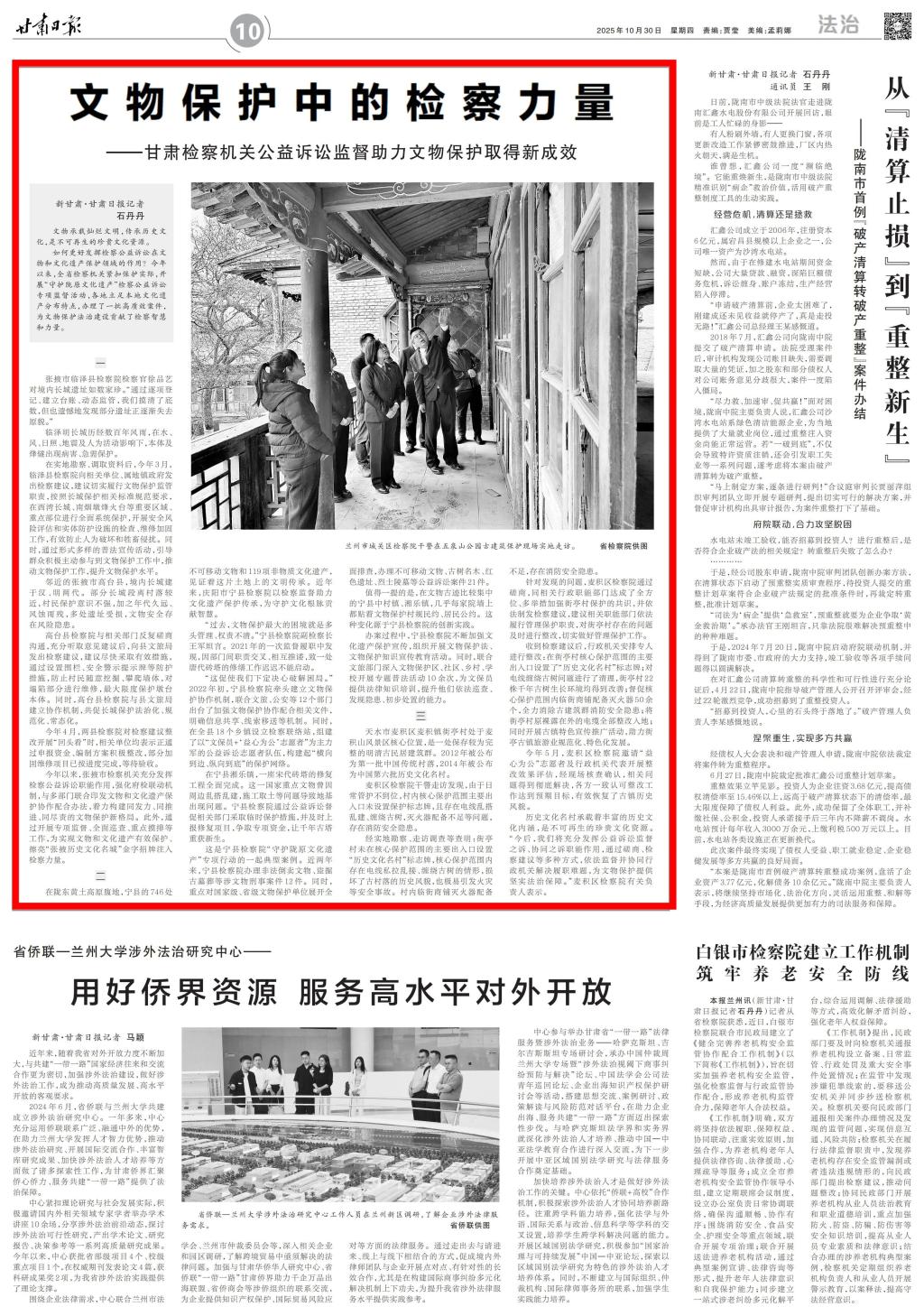 2025年10月30日,甘肃日报刊发《文物保护中的检察力量——takse69